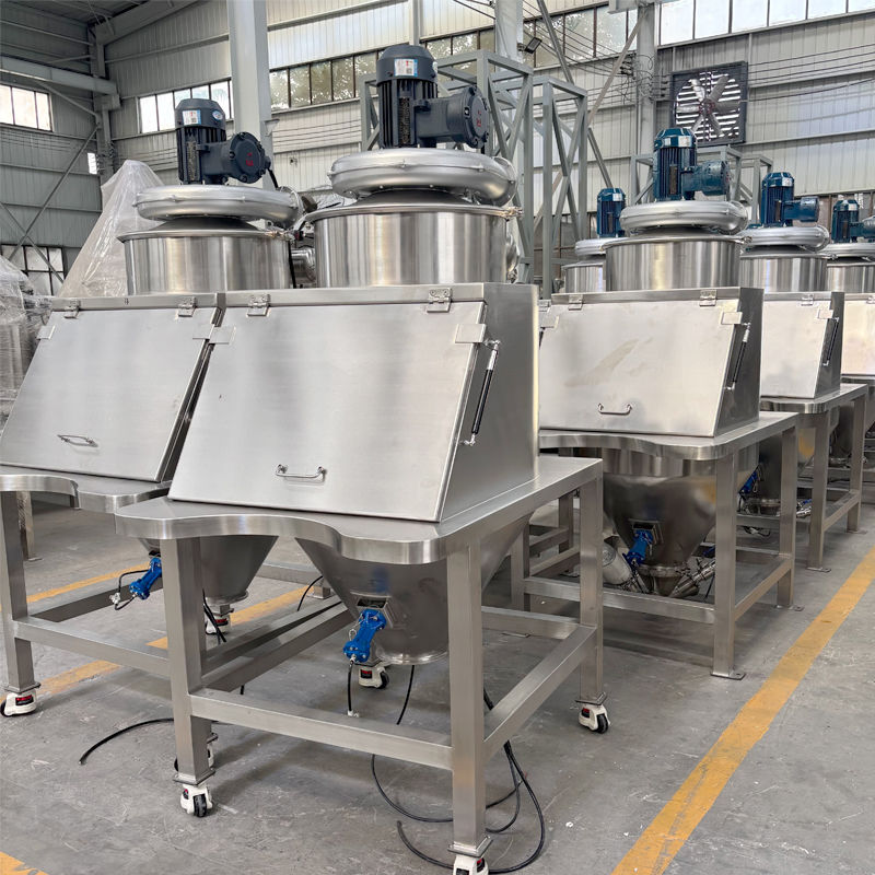 Het stofvrije voedingsstation is een milieuvriendelijke apparatuur voor het voeden van poeder- en korrelvormige materialen. Het lost het probleem van stof dat rondvliegt op door middel van een afgesloten kamer en een negatiefdrukafzuigsysteem. Tijdens het voeden absorbeert de negatieve druk het stof naar het filter, waardoor milieuvervuiling en gezondheidsrisico's worden voorkomen. Sommige van de apparatuur hebben ook breek- en zeef functies, waardoor een soepele voeding wordt gegarandeerd en ze veel worden gebruikt in industrieën met hoge reinheidseisen, zoals de chemische, farmaceutische en voedingsmiddelenindustrie, wat de veiligheid en efficiëntie verbetert.
