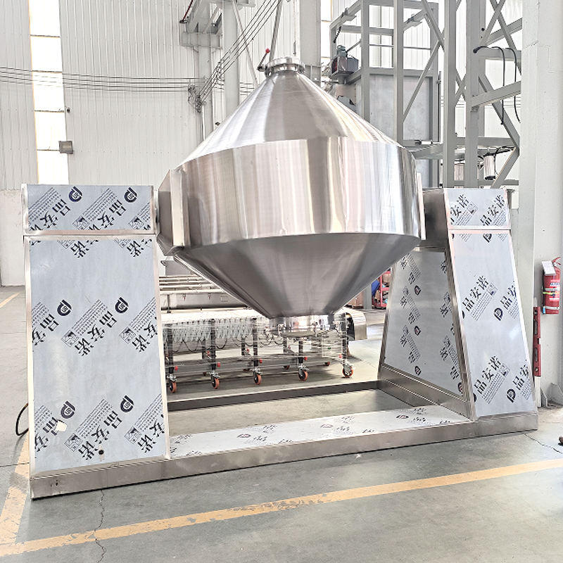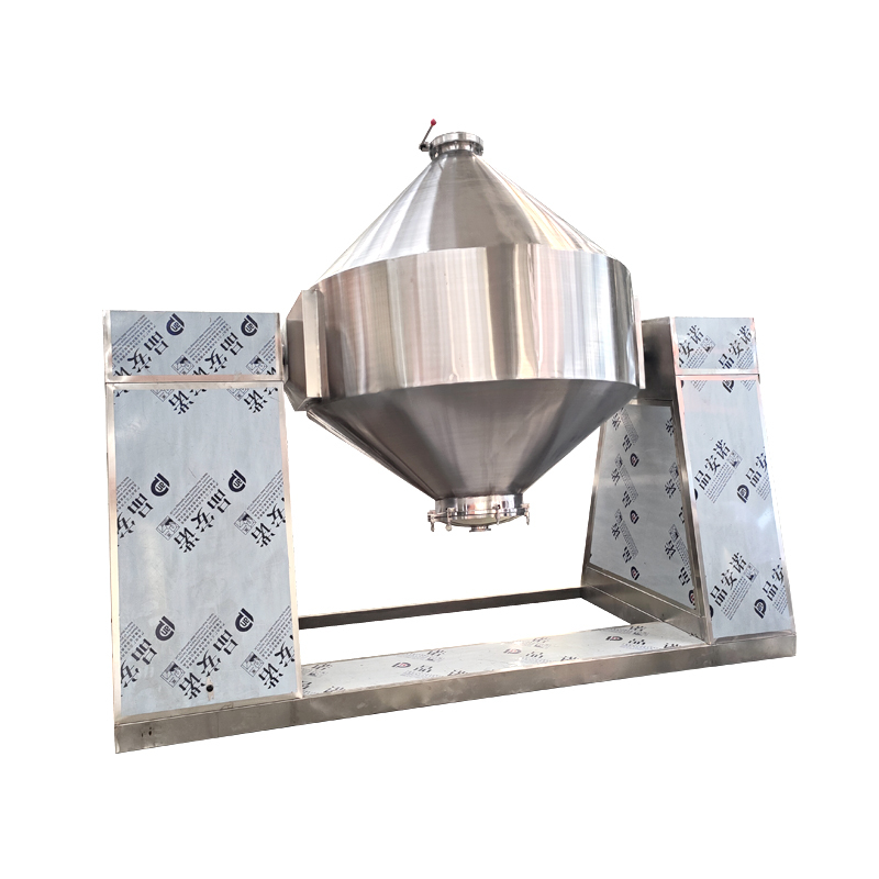 De dubbele kegelmixer is een poedermengapparatuur die wordt gebruikt in de farmaceutische, chemische en andere industrieën.Het bestaat uit symmetrische kegelvormige schelpen die door een centrale as met elkaar verbonden zijn en een "dubbele kegel" vormenOnder invloed van zwaartekracht en centrifugale kracht vallen en verspreiden de materialen zich, waardoor een gelijkmatige vermenging wordt bereikt.Het heeft een hoge vermengingsefficiëntieHet systeem is zeer goed geschikt voor het mengen van droge poeders, korrels, enz.