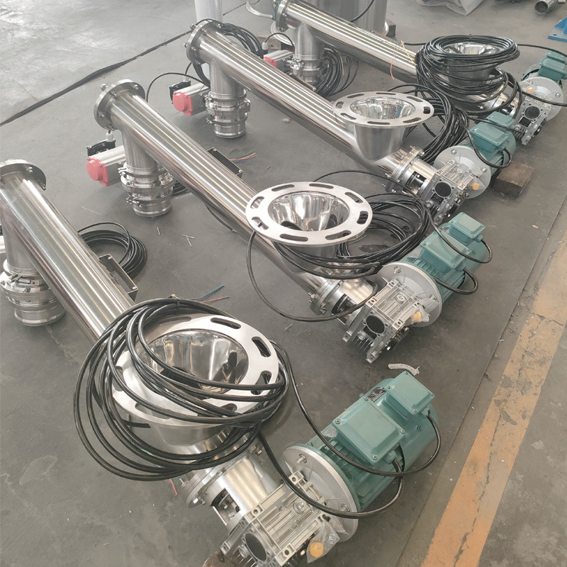 De schroeftransporteur is een transportmiddel dat materialen verplaatst door de rotatie van zijn spiraalvormige bladen. Het is meestal gemaakt van roestvrij staal, dat corrosiebestendig en duurzaam is.
