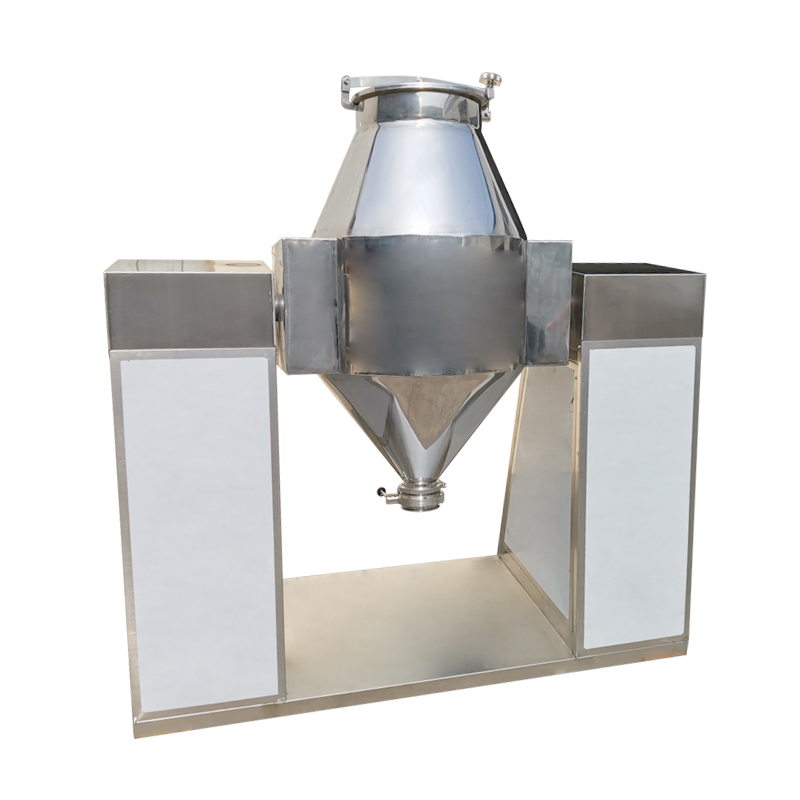 The working principle of the double-cone mixer is based on the physical processes of gravity diffusion and convection mixing. The core of it is that the mixing container rotates at a constant speed around a horizontal axis. During operation, the materials are continuously lifted to a certain height by the rotating cylinder, and then slide down along the cylinder wall under the influence of gravity for diffusion. This lifting and sliding motion repeats in three-dimensional space, causing the different components of the materials to constantly exchange positions and penetrate each other within the container, thereby achieving a rapid, uniform and gentle mixing effect.